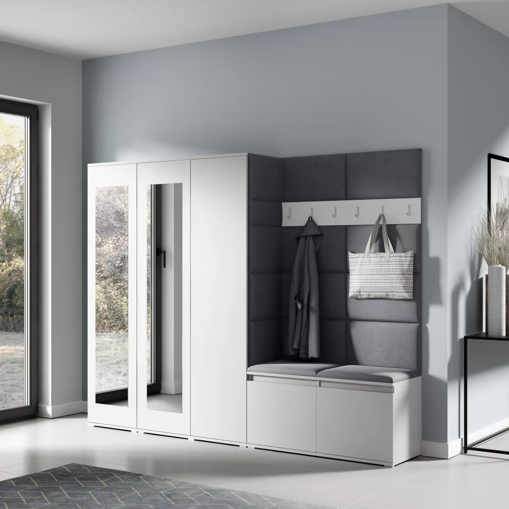 Blum 15 kárpitozott előszobafal tükörrel, fehér - szürke 15
