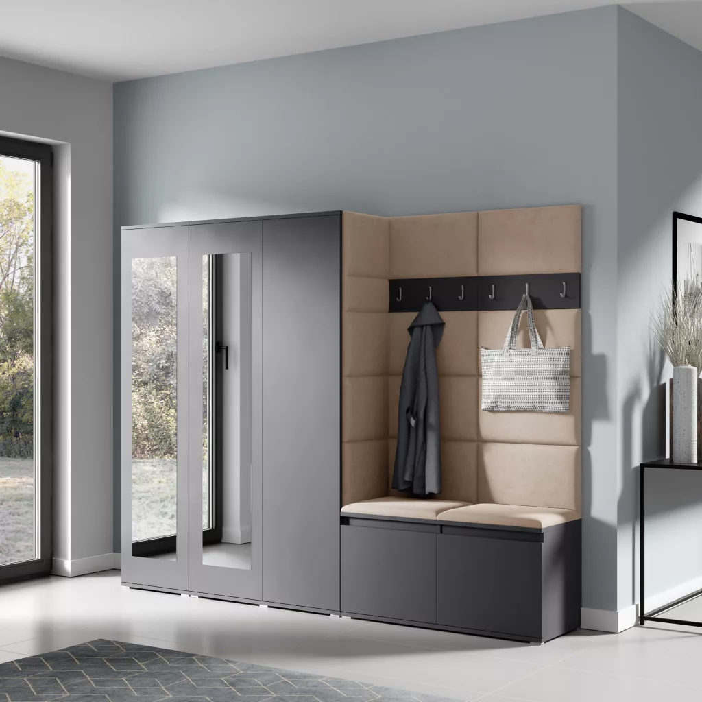 Blum 15 kárpitozott előszobafal tükörrel, grafit - bézs 04
