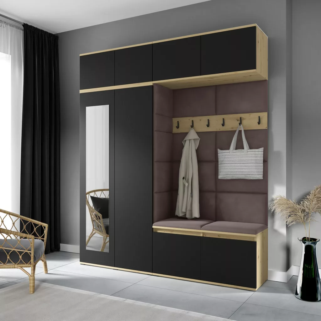 Blum 16 kárpitozott előszobafal tükörrel, artisan/fekete - barna 06
