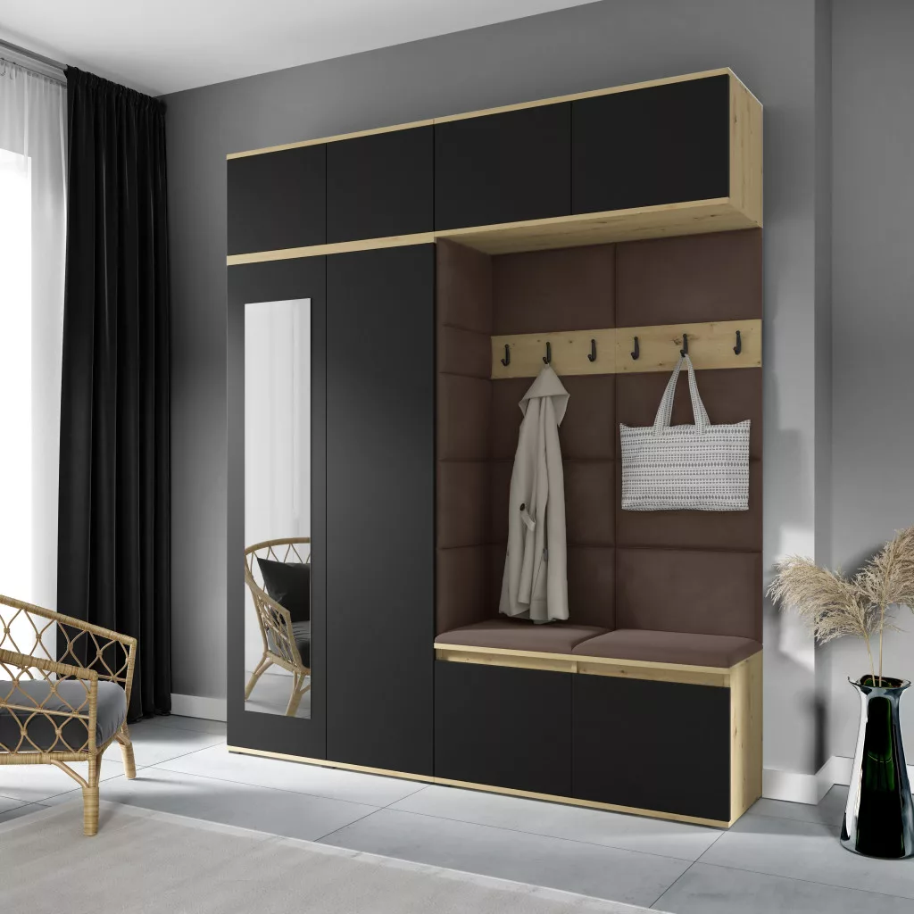 Blum 16 kárpitozott előszobafal tükörrel, artisan/fekete - barna 07