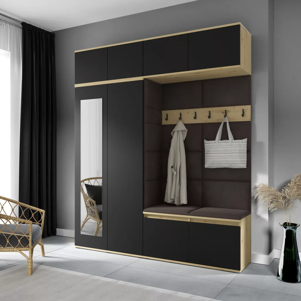 Blum 16 kárpitozott előszobafal tükörrel, artisan/fekete - barna 08