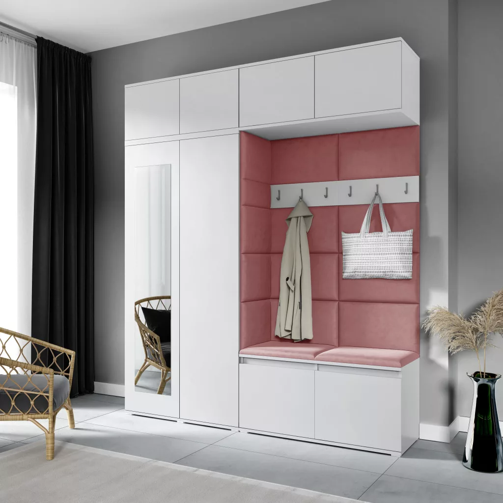 Blum 16 kárpitozott előszobafal tükörrel, fehér - rózsaszín 23 - egyedi