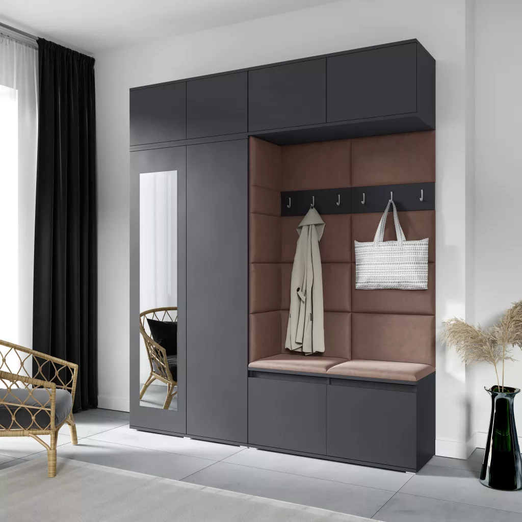 Blum 16 kárpitozott előszobafal tükörrel, grafit - barna 07