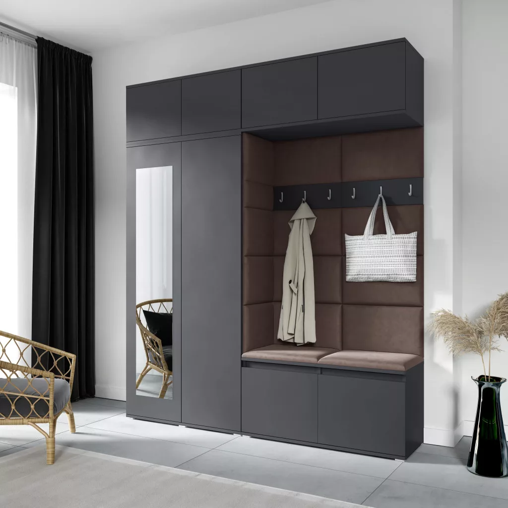 Blum 16 kárpitozott előszobafal tükörrel, grafit - barna 08