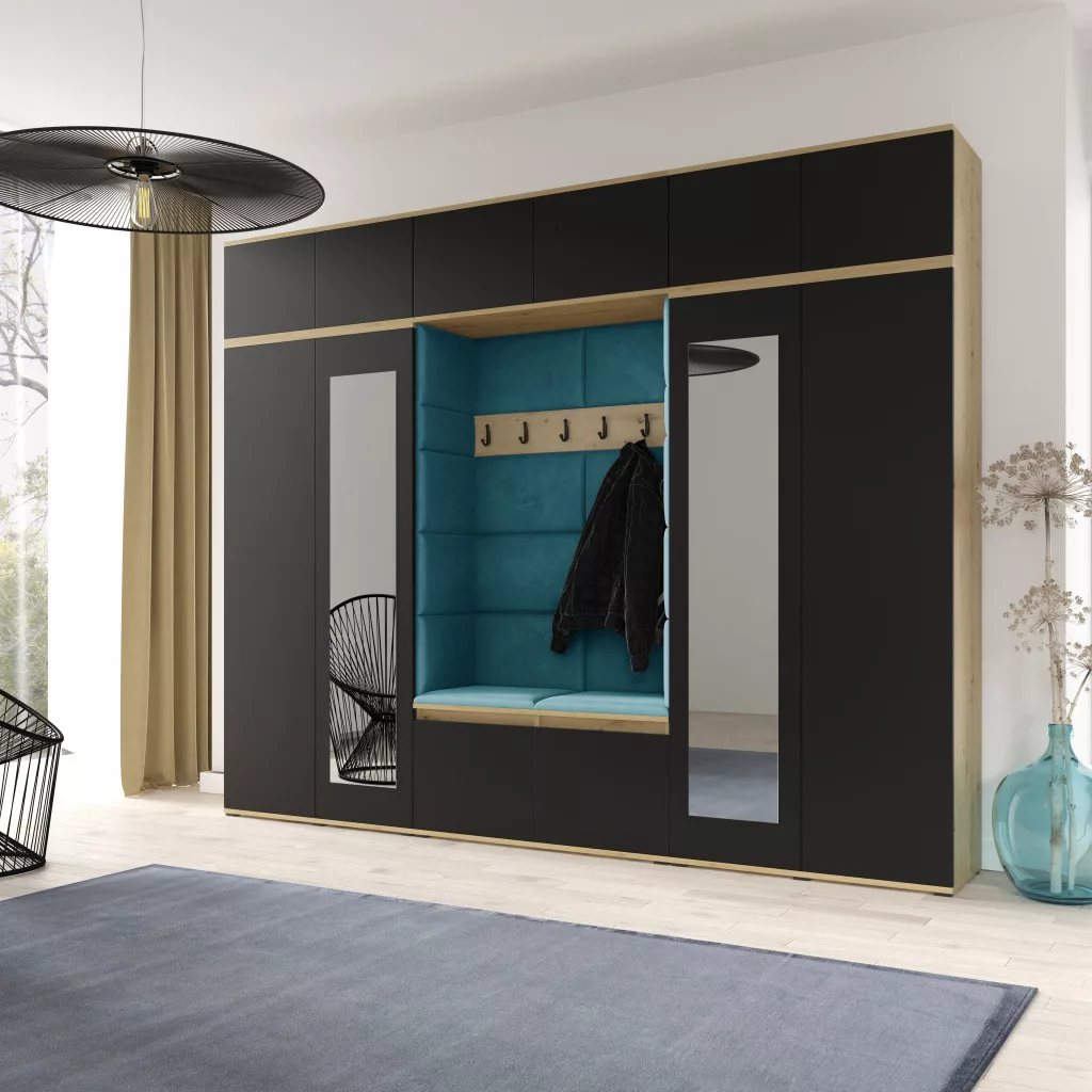 Blum 17 kárpitozott előszobafal tükörrel, artisan/fekete - azúr 13 - egyedi
