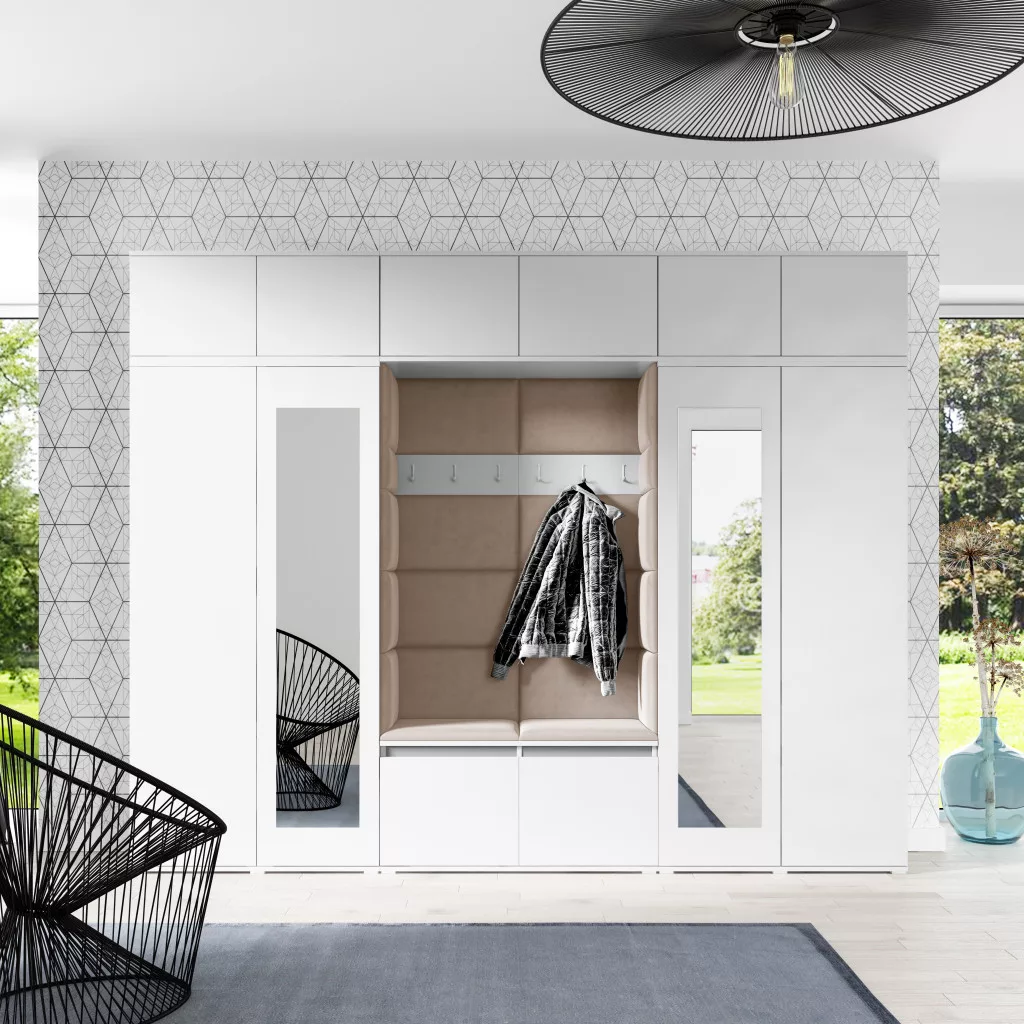 Blum 17 kárpitozott előszobafal tükörrel, fehér - bézs 04