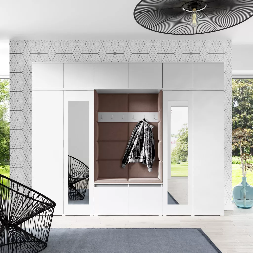 Blum 17 kárpitozott előszobafal tükörrel, fehér - barna 07