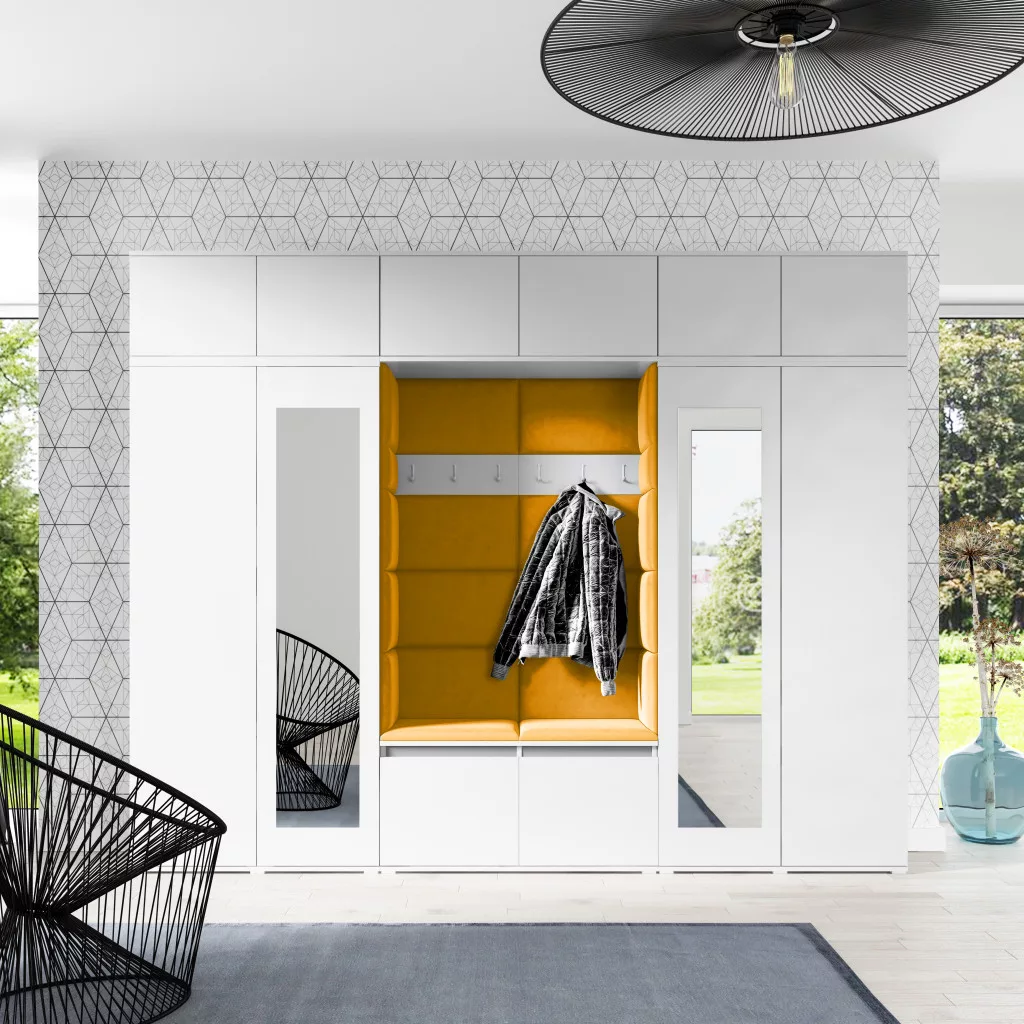 Blum 17 kárpitozott előszobafal tükörrel, fehér - sárga 26 - egyedi