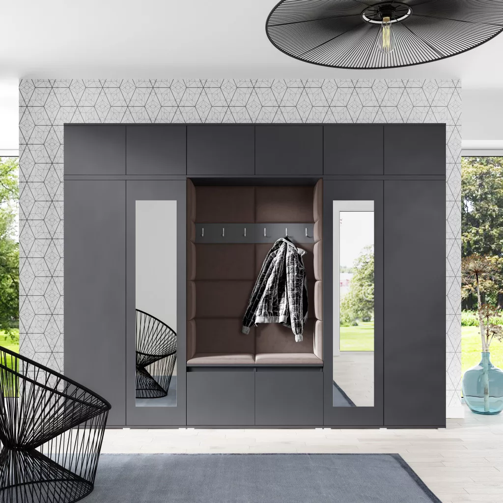 Blum 17 kárpitozott előszobafal tükörrel, grafit - barna 08
