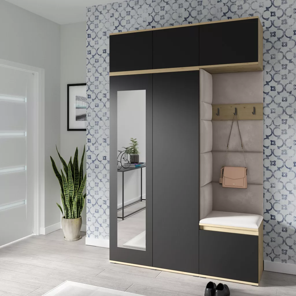 Blum 18 kárpitozott előszobafal tükörrel, artisan/fekete - bézs 03