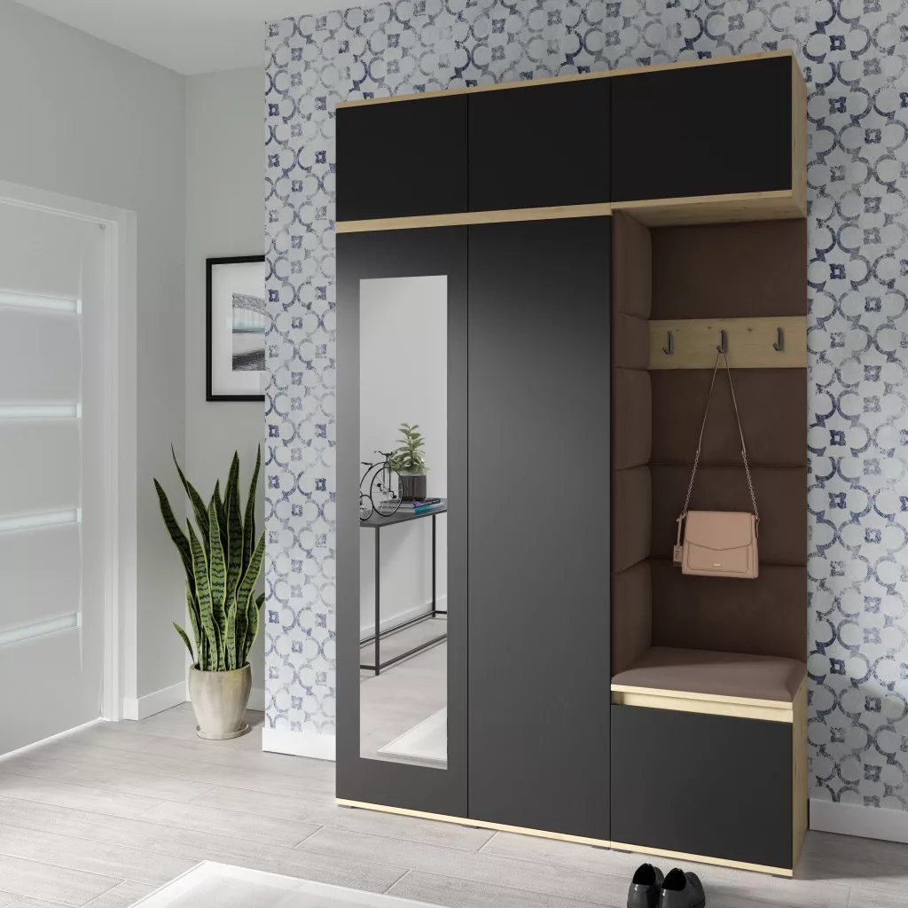 Blum 18 kárpitozott előszobafal tükörrel, artisan/fekete - barna 07