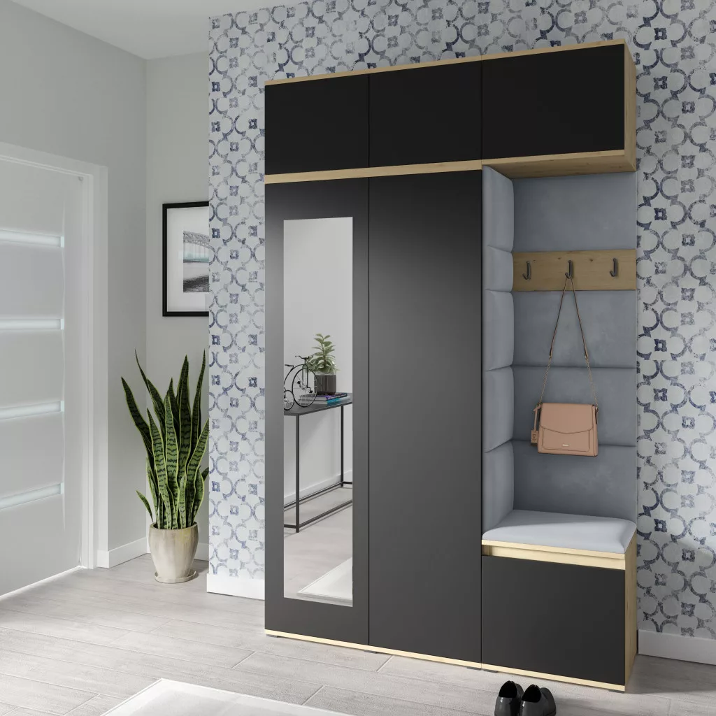 Blum 18 kárpitozott előszobafal tükörrel, artisan/fekete - szürke 14