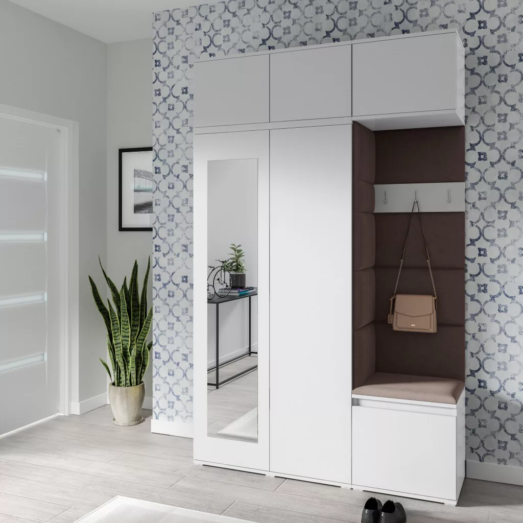 Blum 18 kárpitozott előszobafal tükörrel, fehér - barna 08