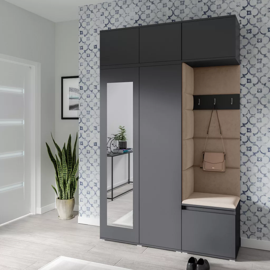 Blum 18 kárpitozott előszobafal tükörrel, grafit - bézs 04