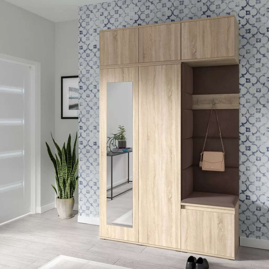 Blum 18 kárpitozott előszobafal tükörrel, sonoma - barna 07
