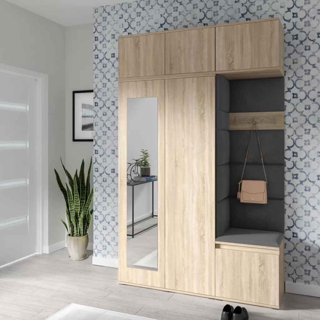 Blum 18 kárpitozott előszobafal tükörrel, sonoma - szürke 15