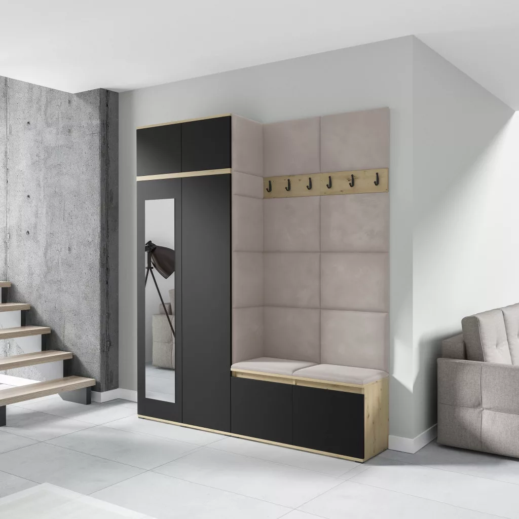 Blum 19 kárpitozott előszobafal tükörrel, artisan/fekete - bézs 02