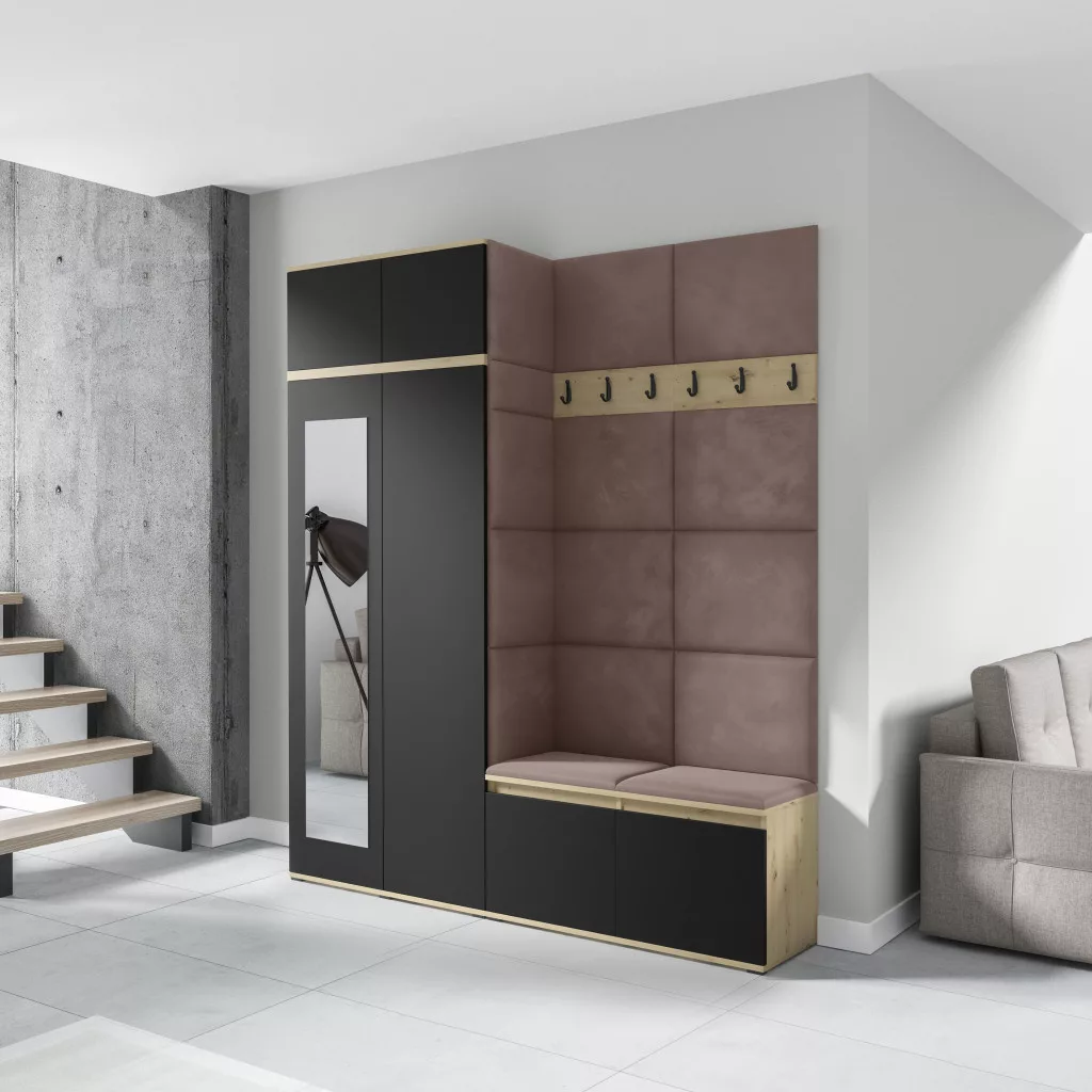 Blum 19 kárpitozott előszobafal tükörrel, artisan/fekete - barna 06