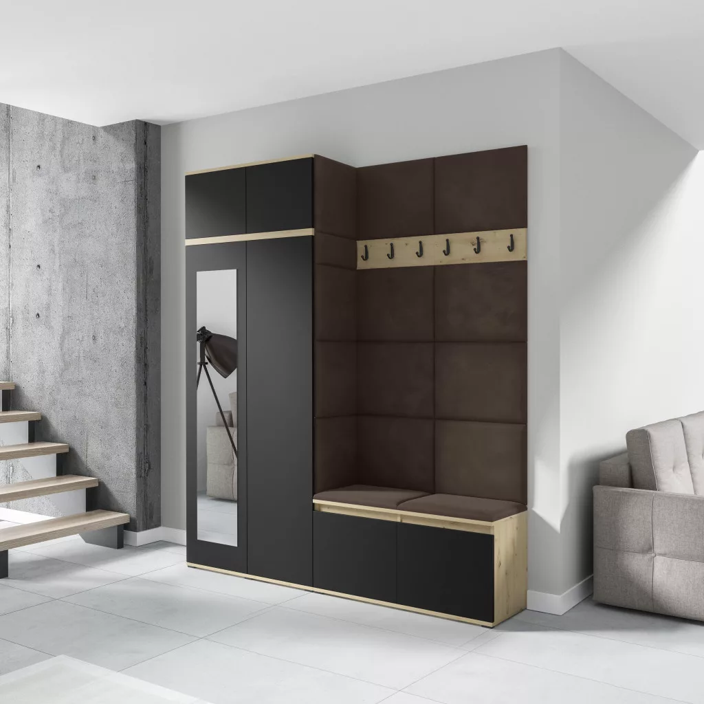 Blum 19 kárpitozott előszobafal tükörrel, artisan/fekete - barna 08