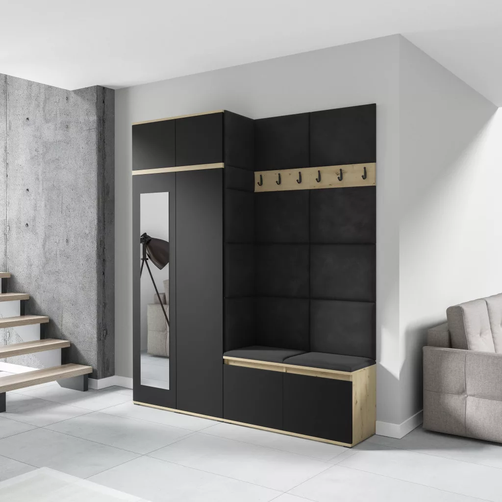 Blum 19 kárpitozott előszobafal tükörrel, artisan/fekete - fekete 16