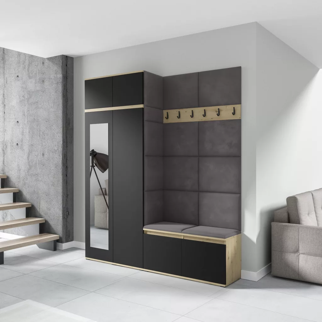 Blum 19 kárpitozott előszobafal tükörrel, artisan/fekete - szürke 34