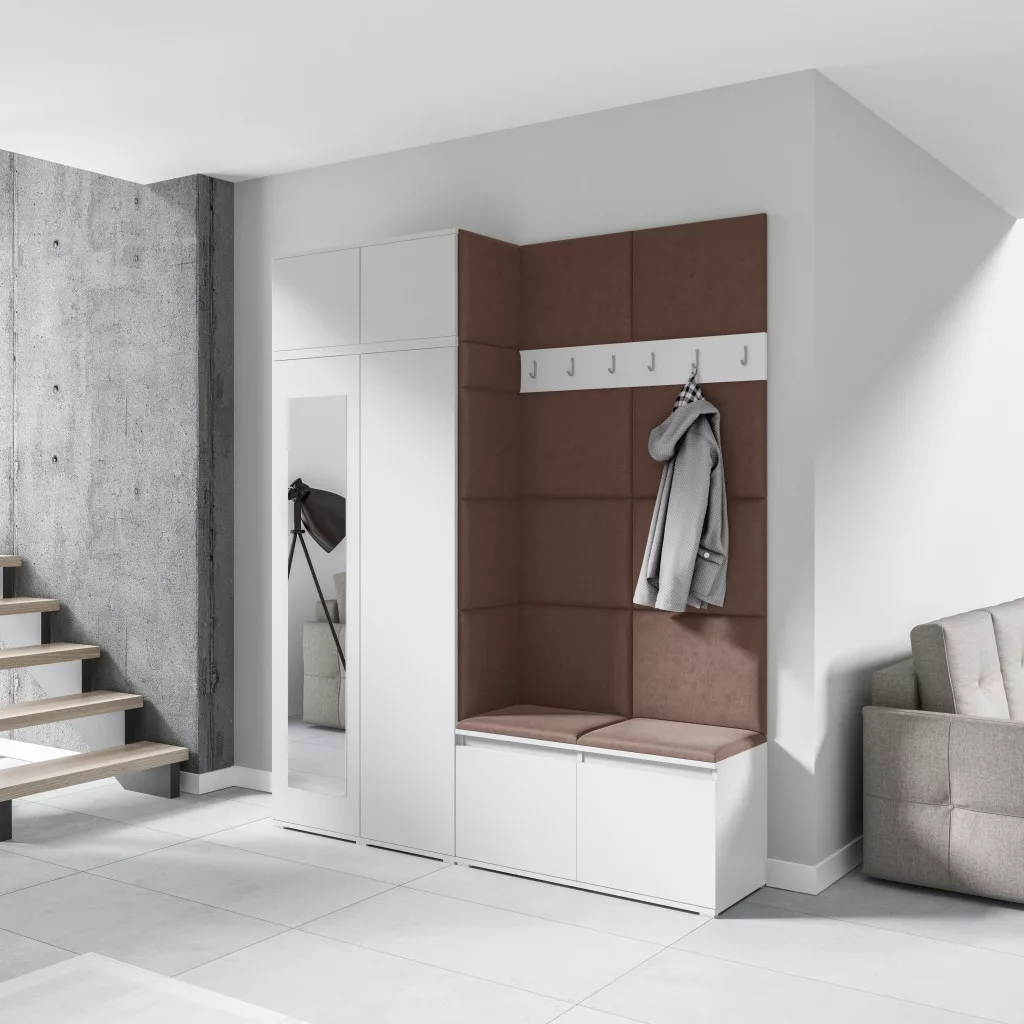A kárpitozott paneleket közvetlenül a falra, a szekrényre és a cipőtartóra kell rögzíteni ragasztó segítségével. A ragasztót a csomag nem tartalmazza.