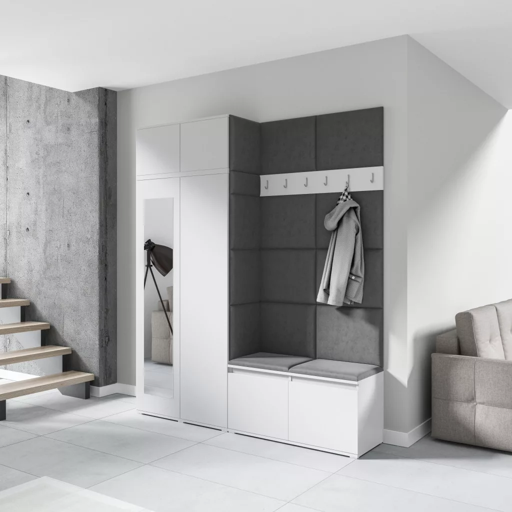 Blum 19 kárpitozott előszobafal tükörrel, fehér - szürke 15