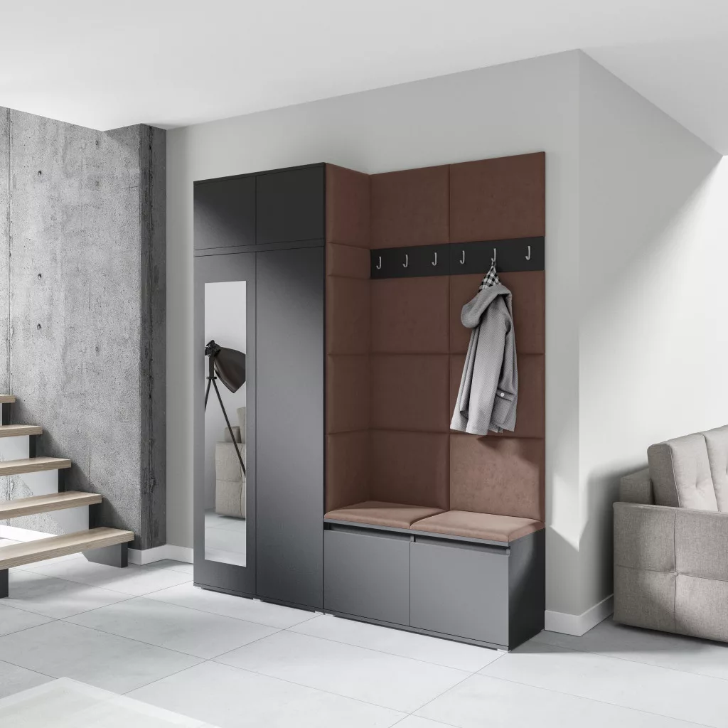 Blum 19 kárpitozott előszobafal tükörrel, grafit - barna 07