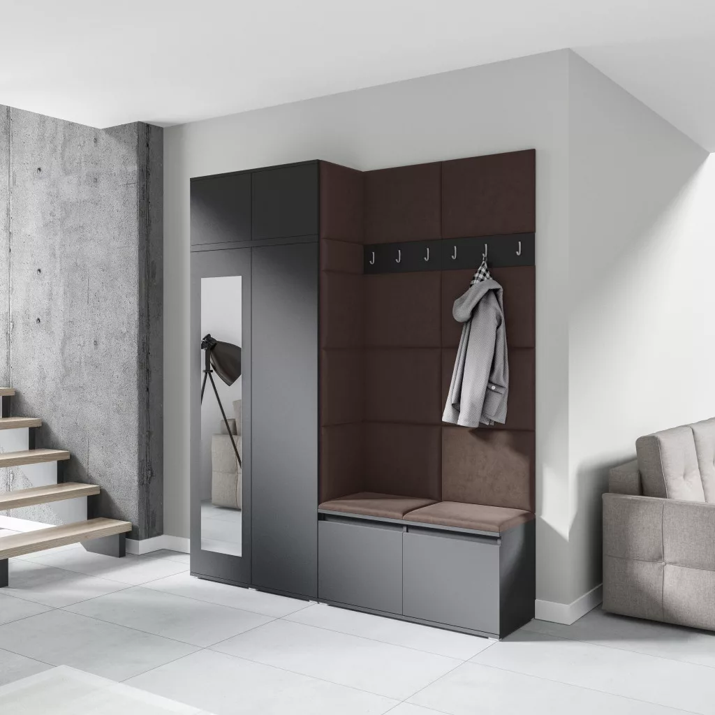 Blum 19 kárpitozott előszobafal tükörrel, grafit - barna 08