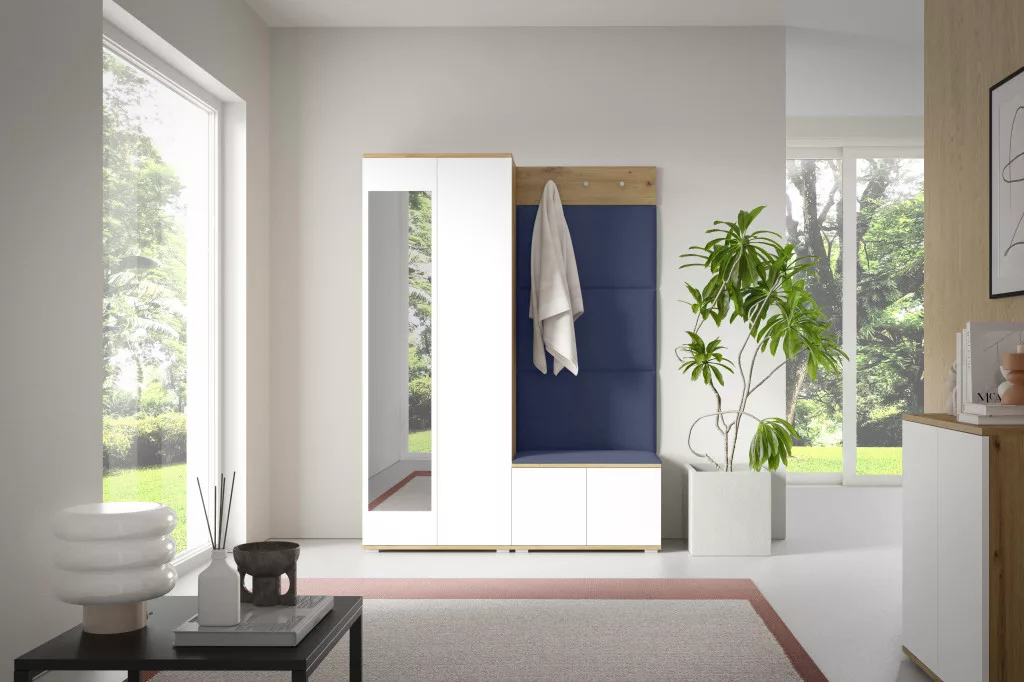 Sevilla 1 kárpitozott előszobafal, artisan/fehér - sötét kék 30 - egyedi