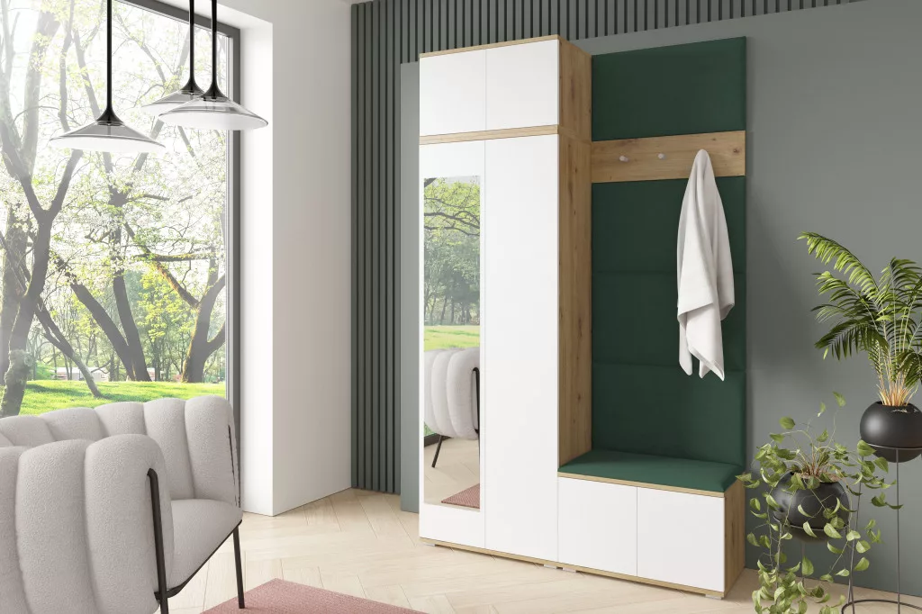 Sevilla 2 kárpitozott előszobafal, artisan/fehér - sötét zöld 28- egyedi