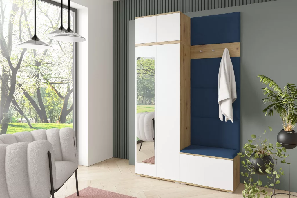 Sevilla 2 kárpitozott előszobafal, artisan/fehér - sötét kék 30- egyedi