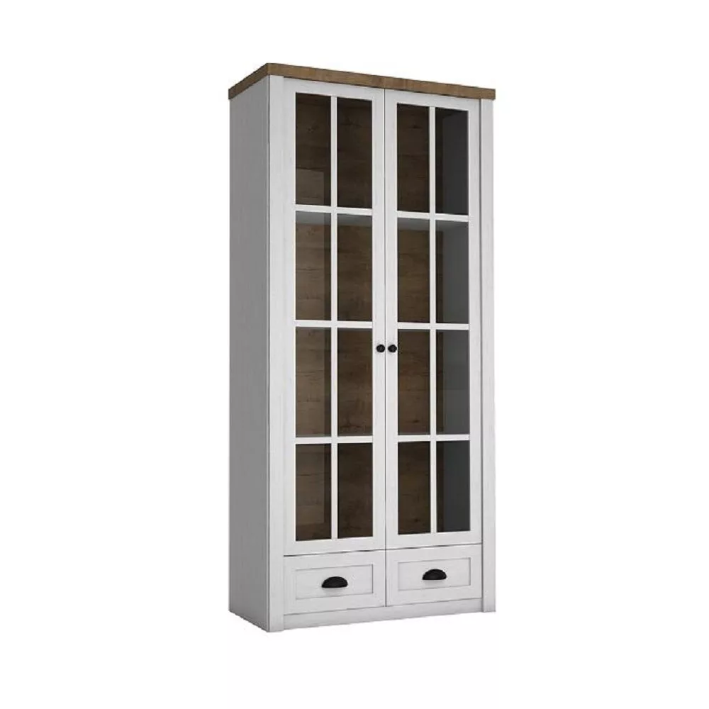 Vitrines szekrény PROVANCE sosna andersen/tölgy lefkas színváltozatban. Anyag: laminált DTD/üveg.