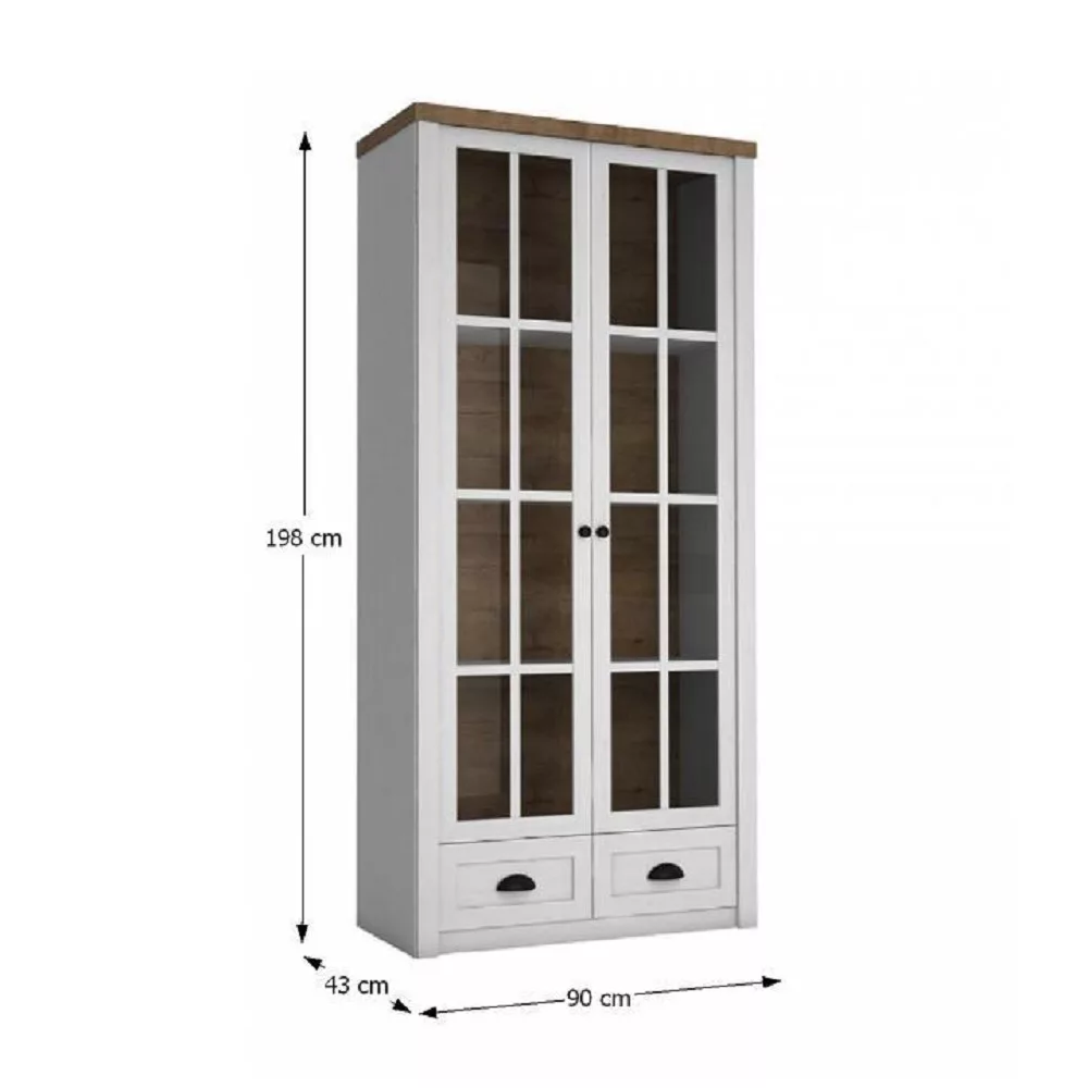 Vitrines szekrény, sosna Andersen/tölgy lefkas, PROVANCE W2S