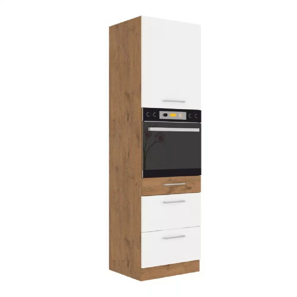 Magas szekrény beépített sütőnek, lancelot tölgy/ fehér extra magas fényű HG, VEGA 60 DPS-210 3S 1F