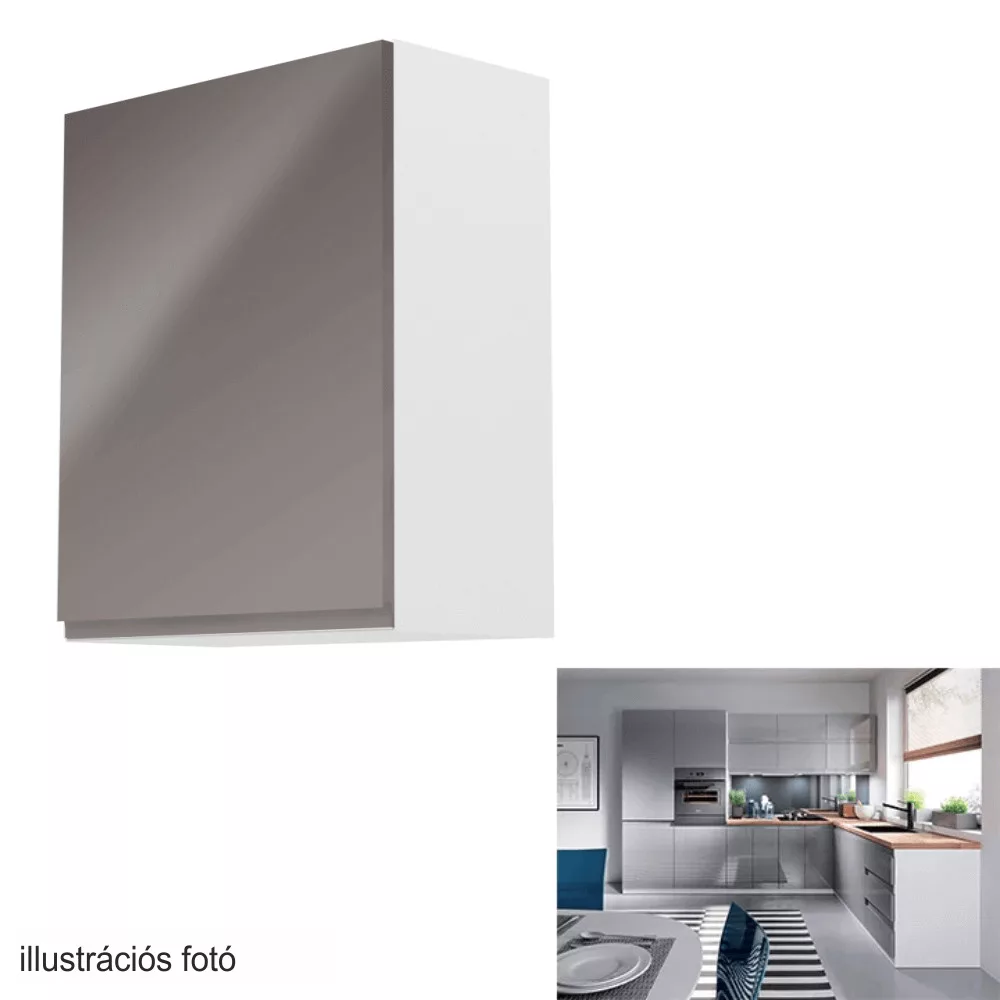 Felsőszekrény, fehér/szürke extra magasfényű, balos, AURORA G601F