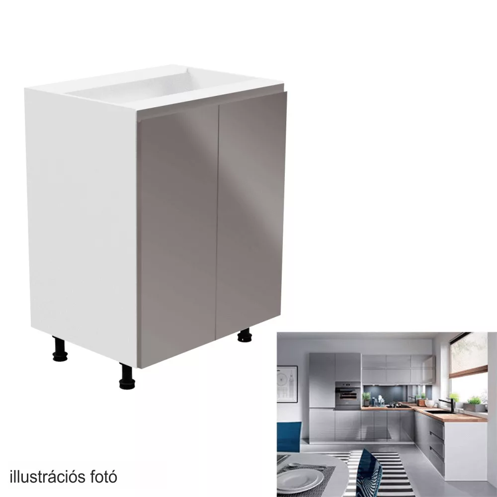 Alsószekrény, fehér/szürke extra magasfényű, AURORA D602F