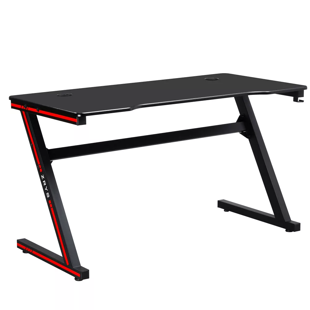 Deszka anyaga: MDF+PVC fólia Szín: fekete Szerkezet anyaga: fém Szín: porbevonat fekete+piros matricák Méretek (SzéxMéxMa): 140x60x75 cm Asztallap vastagsága: 1,5 cm Statikus teherbírás: 80 kg Univerzális használat Gamer asztal Számítógépasztal Minőségi anyag hosszú élettartammal Az elülső részen formázott deszka található Erős fém alap Z alakban Felületi kezelés - porbevonat Energikus kialakítás a piros matricáknak köszönhetően Fejhallgató tartóval 2 nyílással a kábelek számára Nagy hely a lábak számára Kompakt dizájn Ideális gamer székekhez Bontásban szállítva