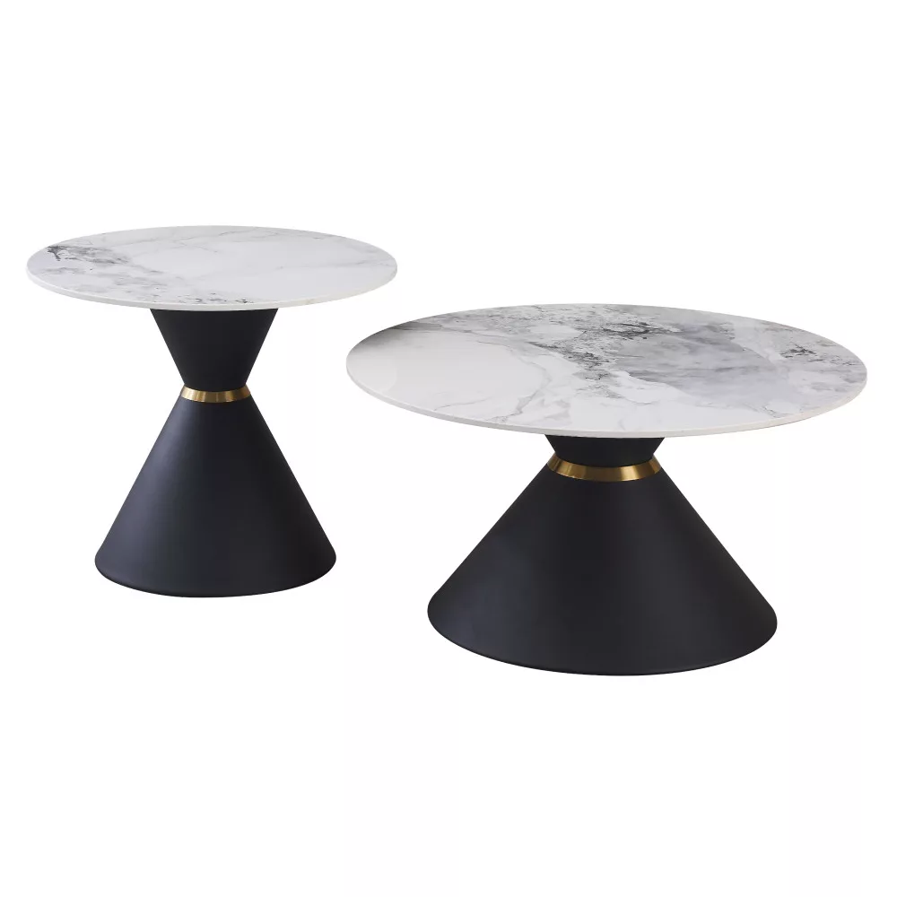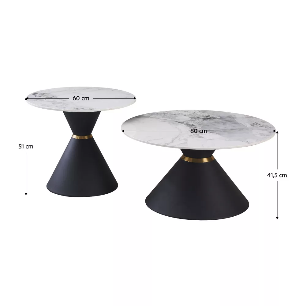 Dohányzóasztalok, 2 db-os szett, fehér márvány/fekete/arany, acél, MABUZ