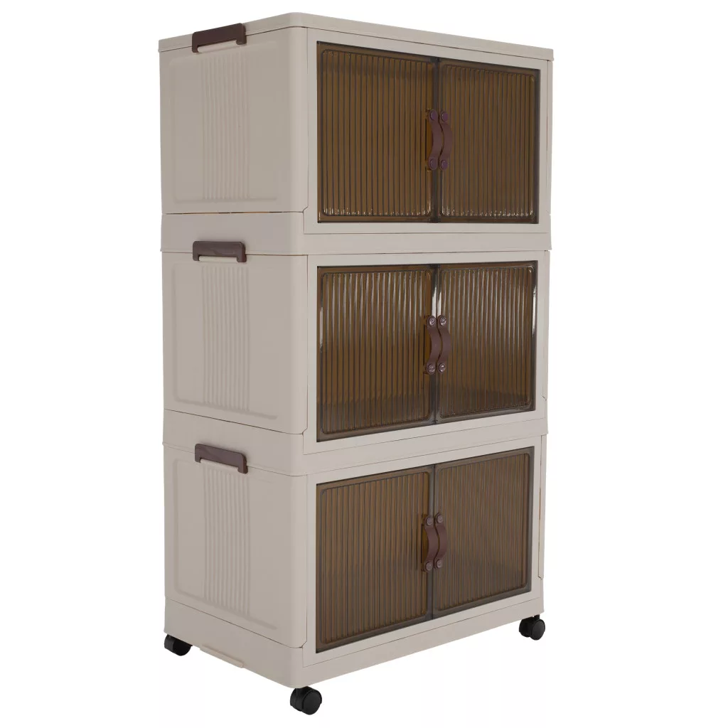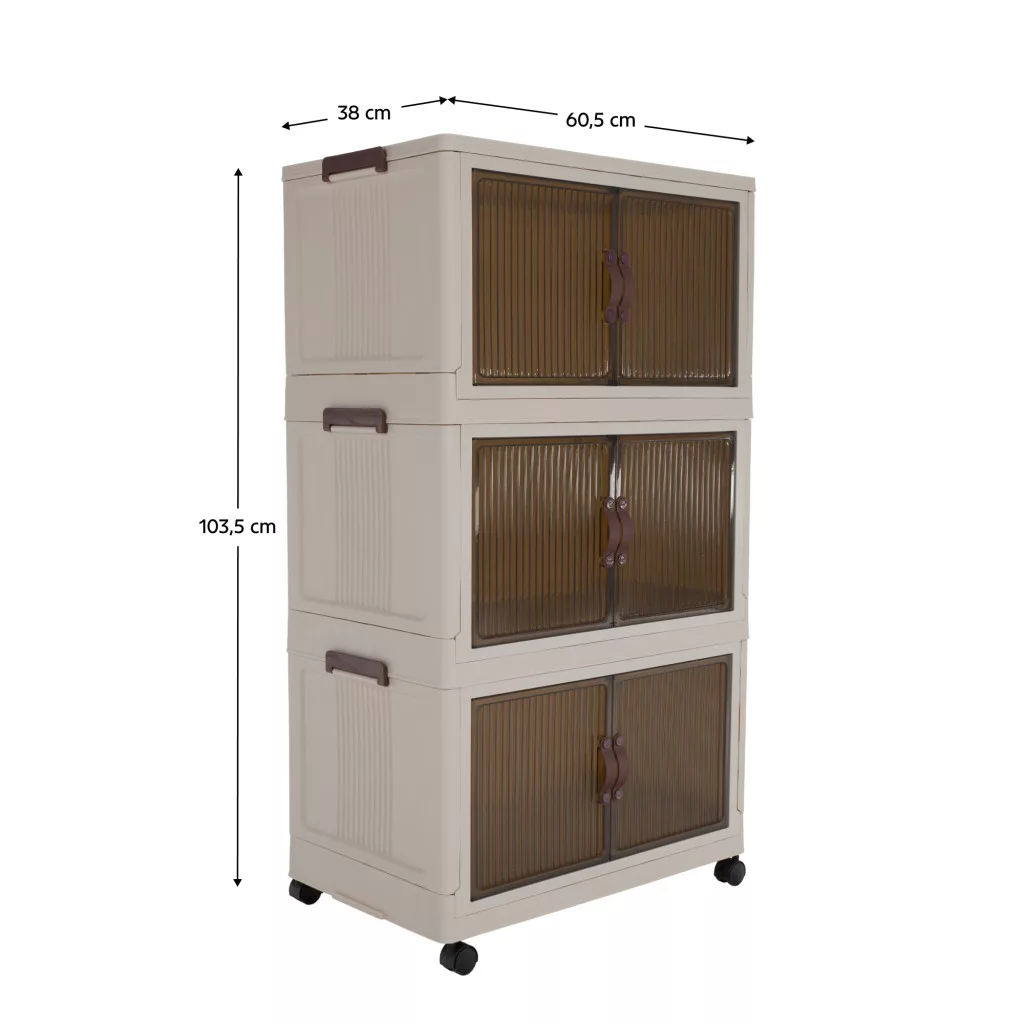 Összecsukható szekrény, fehér/barna, műanyag, POSA TYP 2