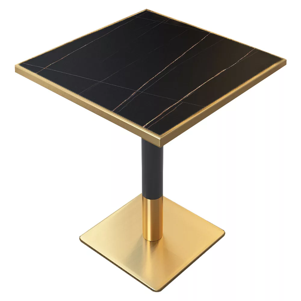 Étkező bisztró asztal, fekete márvány/fekete/arany, 70x70 cm, PRESTON