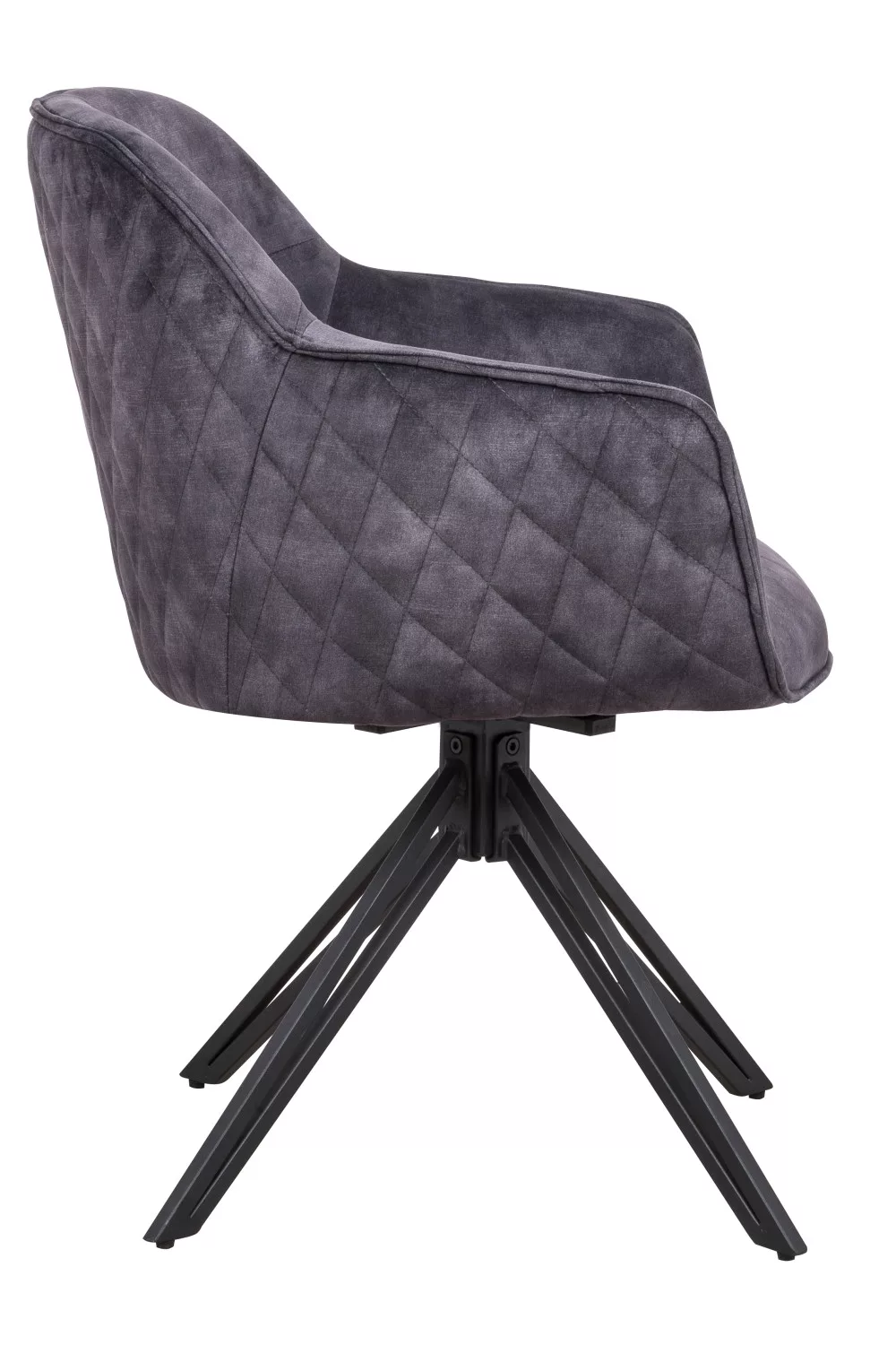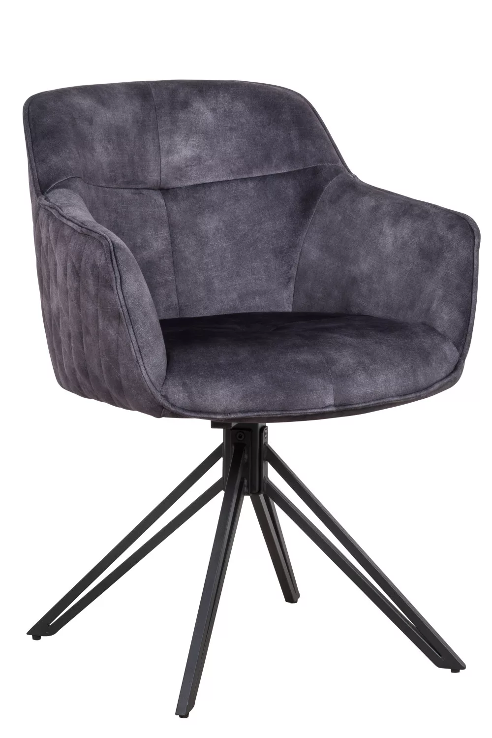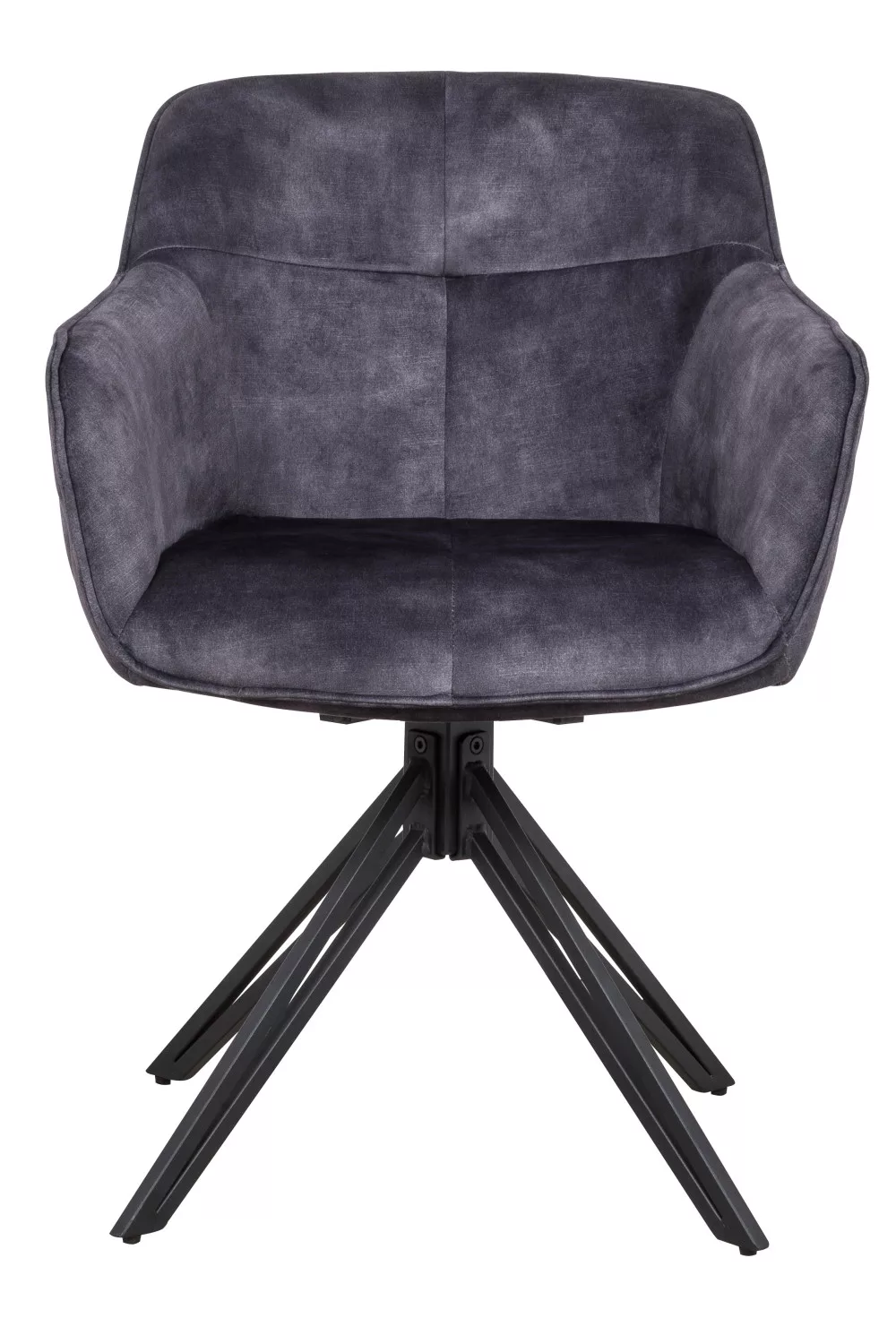 A szék ülőfelülete és háttámlája antracit színű szövetből készültek. Lába 180°-ban elforgatható porszórt fém.