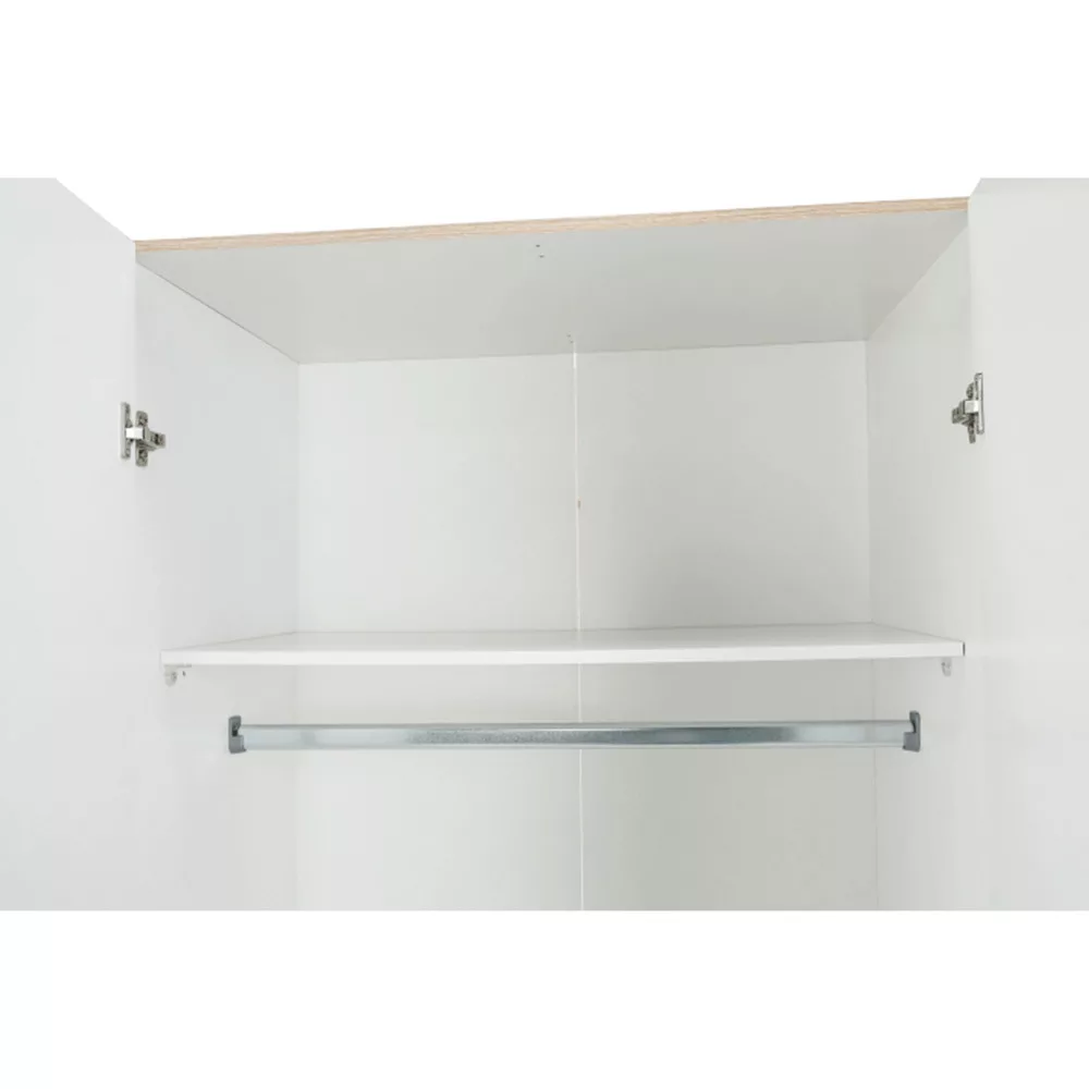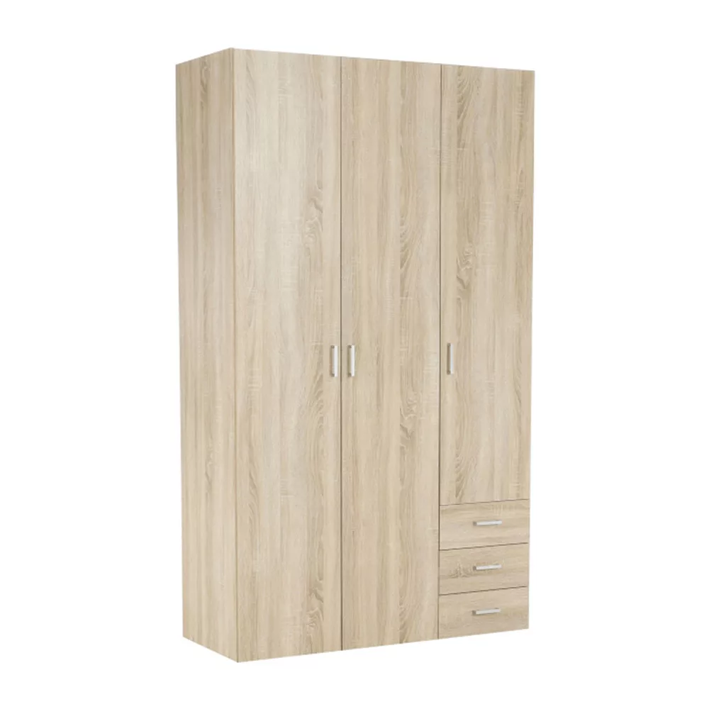 3 ajtós szekrény akasztórúddal és polccal, oldalsó szekrények polcosak, 3 fiók, GWEN 70429